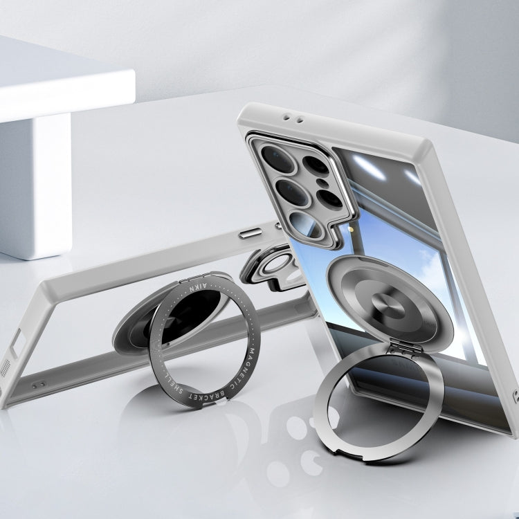 For Samsung Galaxy S25 Ultra 5G 360 Holder MagSafe Acrylic Hybrid TPU Phone Case(Grey)