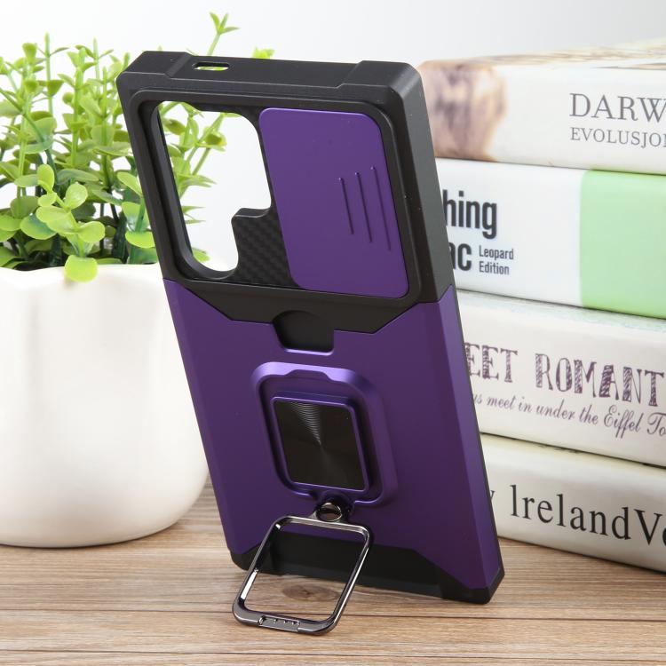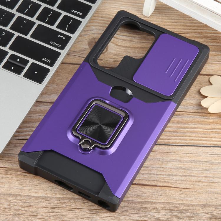 For Samsung Galaxy S25 Ultra 5G Camera Shield Card Slot PC+TPU Phone Case(Purple)