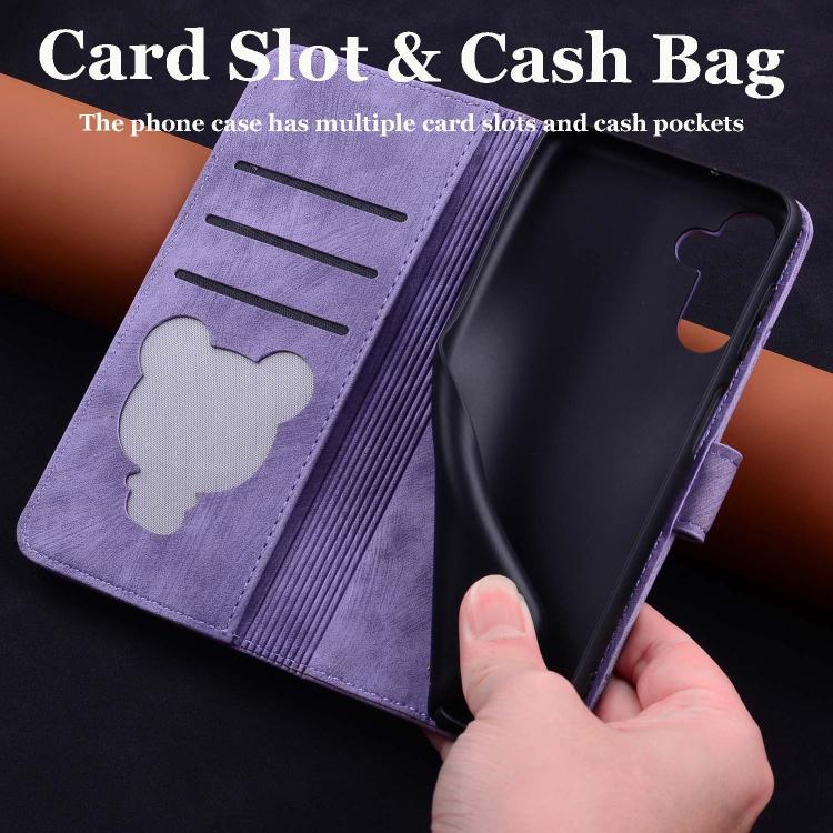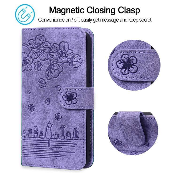 For Samsung Galaxy S25 Ultra 5G Cartoon Sakura Cat Embossed Leather Phone Case(Purple)