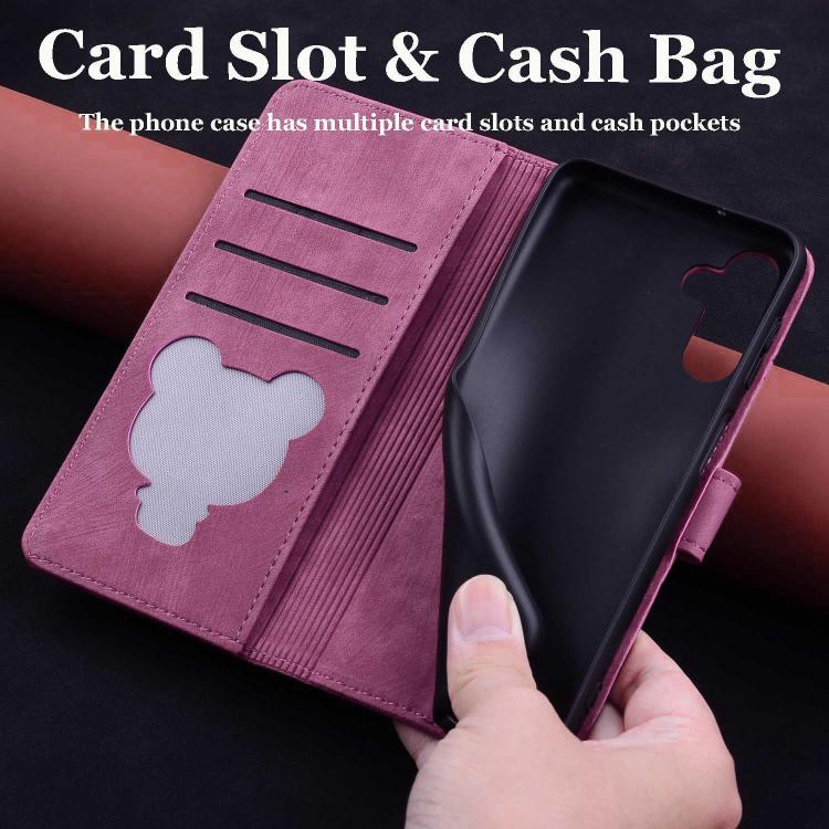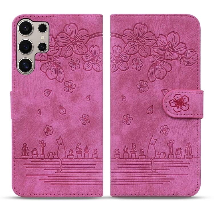 For Samsung Galaxy S25 Ultra 5G Cartoon Sakura Cat Embossed Leather Phone Case(Rose Red)