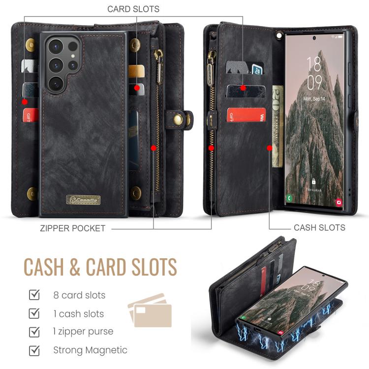 For Samsung Galaxy S25 Ultra 5G CaseMe 008 Detachable Multifunctional Leather Phone Case(Black)