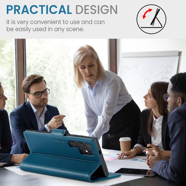 For Samsung Galaxy S25 Ultra 5G CaseMe 023 Butterfly Buckle Litchi Texture RFID Anti-theft Leather Phone Case(Blue)