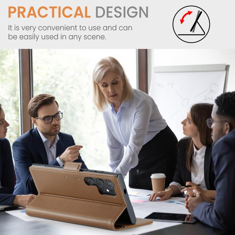 For Samsung Galaxy S25 Ultra 5G CaseMe 023 Butterfly Buckle Litchi Texture RFID Anti-theft Leather Phone Case(Brown)