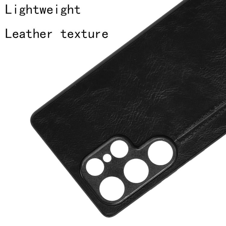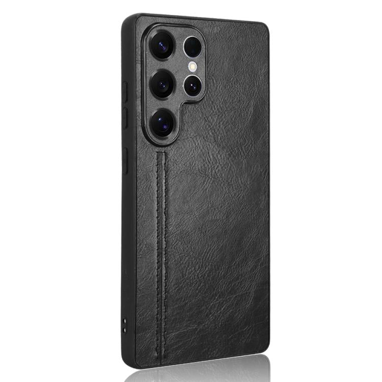 For Samsung Galaxy S25 Ultra 5G Cow Pattern Sewing Card Bag Phone Case(Black)