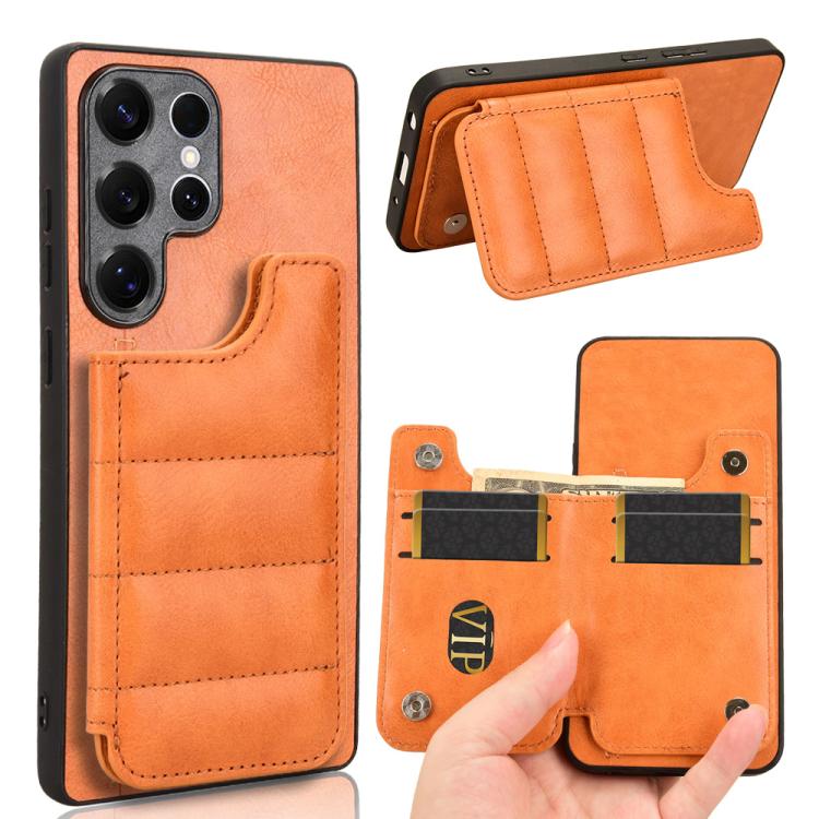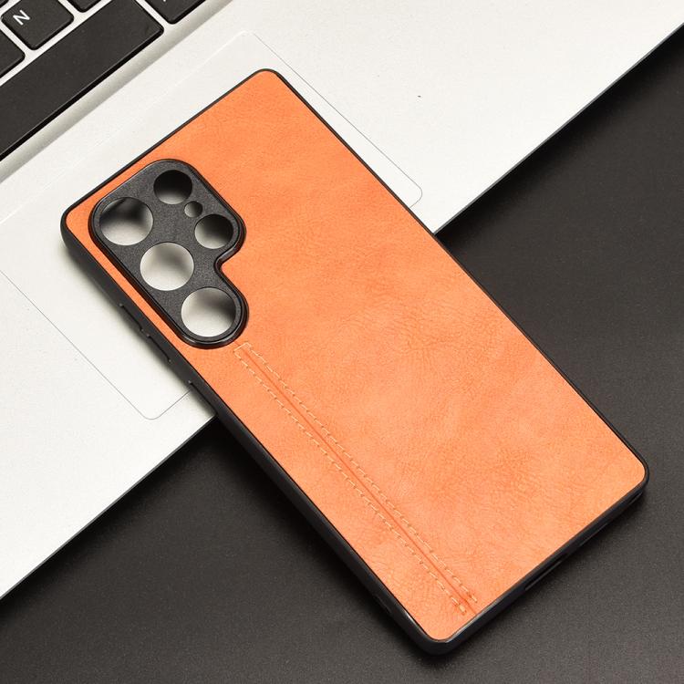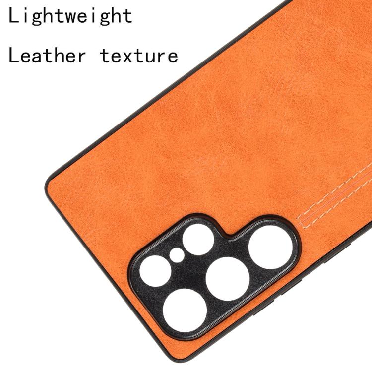 For Samsung Galaxy S25 Ultra 5G Cow Pattern Sewing Card Bag Phone Case(Orange)