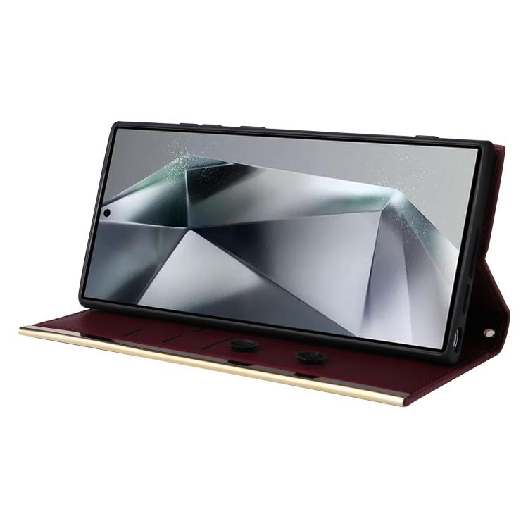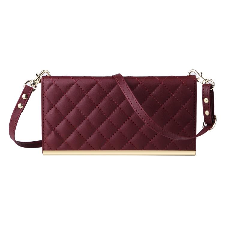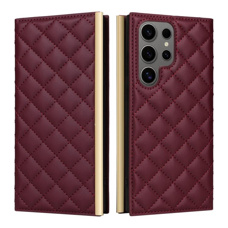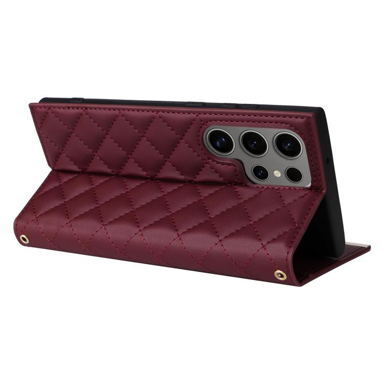 For Samsung Galaxy S25 Ultra 5G Crossbody Rhombic Sucker Leather Phone Case(Claret)