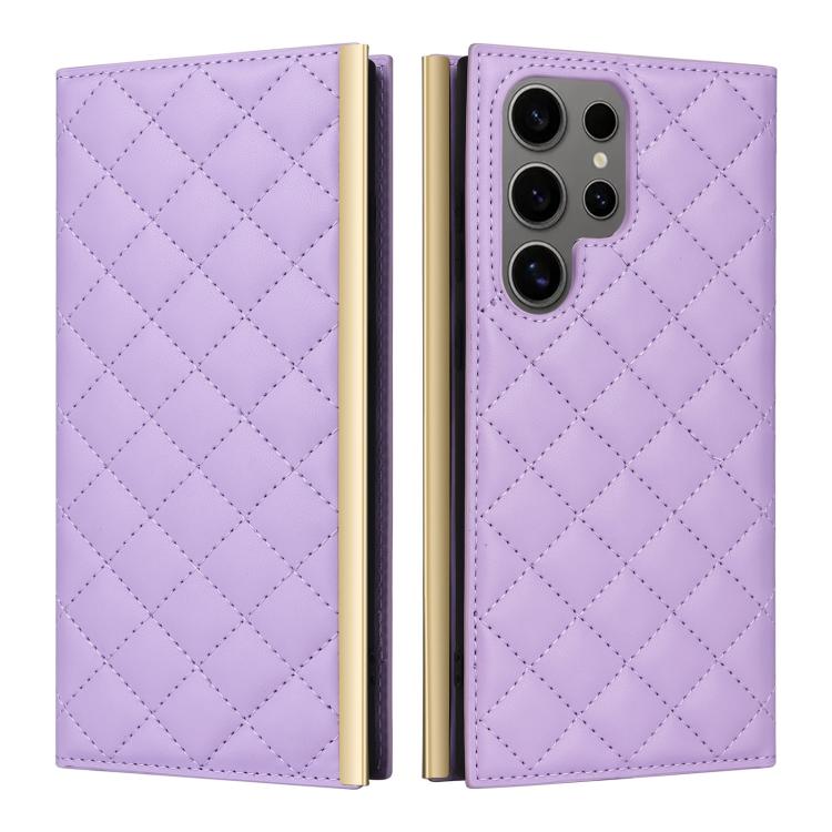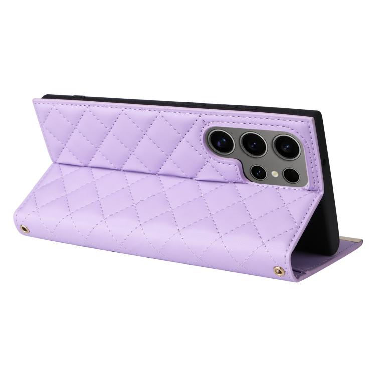 For Samsung Galaxy S25 Ultra 5G Crossbody Rhombic Sucker Leather Phone Case(Purple)