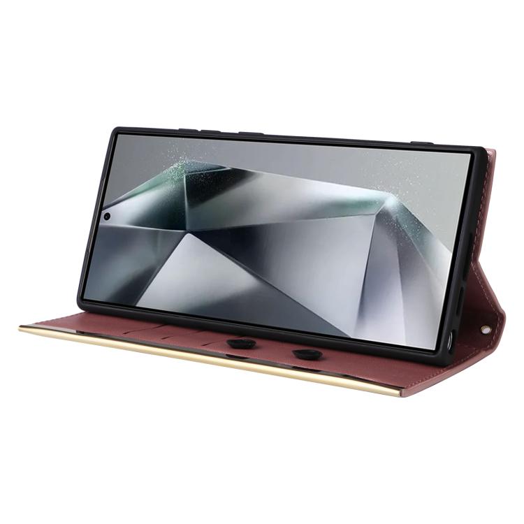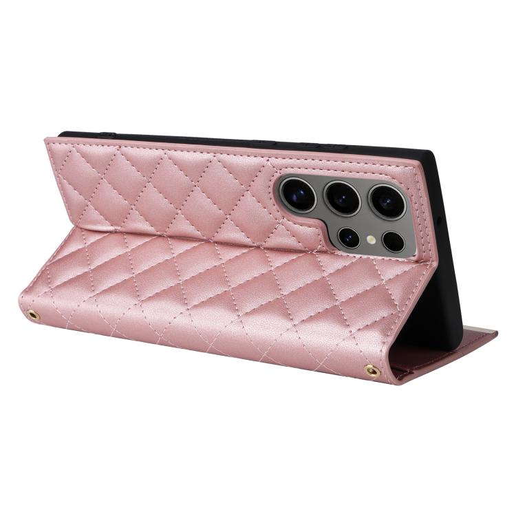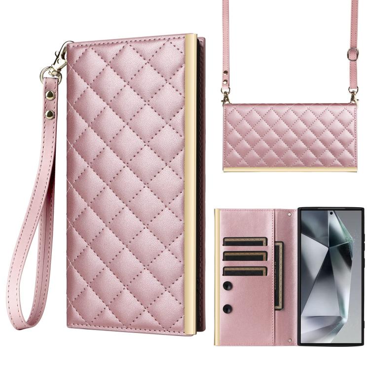 For Samsung Galaxy S25 Ultra 5G Crossbody Rhombic Sucker Leather Phone Case(Rose Gold)