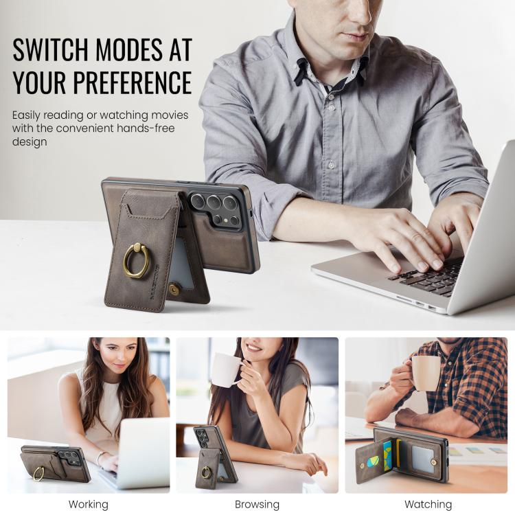 For Samsung Galaxy S25 Ultra 5G MAGKING K1 MagSafe Detachable Wallet RFID Back Cover Phone Case(Coffee)