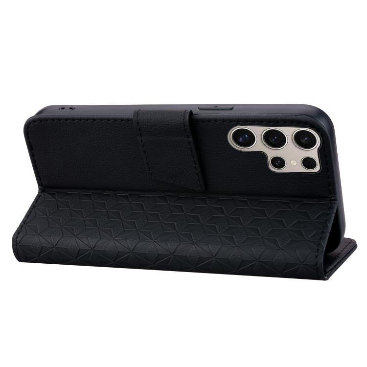 For Samsung Galaxy S25 Ultra 5G Diamond Buckle Leather Phone Case with Lanyard(Black)