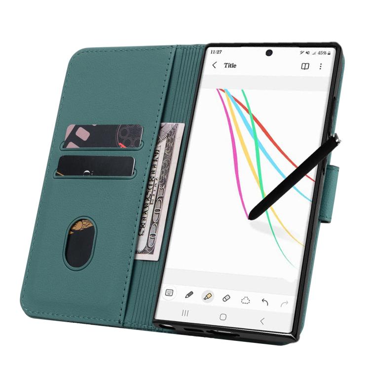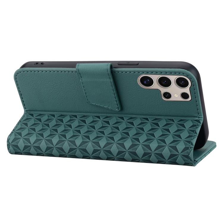 For Samsung Galaxy S25 Ultra 5G Diamond Buckle Leather Phone Case with Lanyard(Green)