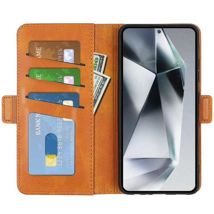 For Samsung Galaxy S25 Ultra 5G Dual-side Magnetic Buckle Horizontal Flip Leather Phone Case(Yellow)