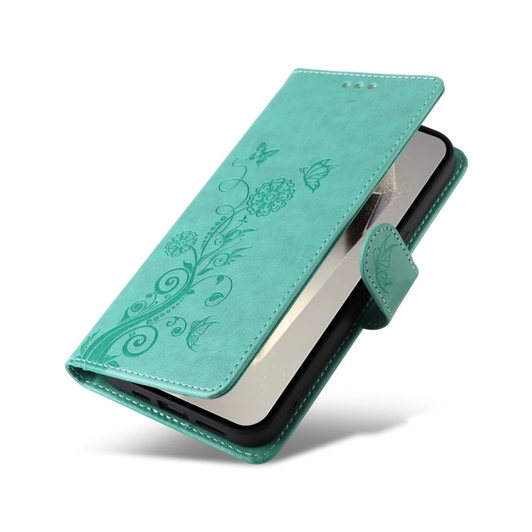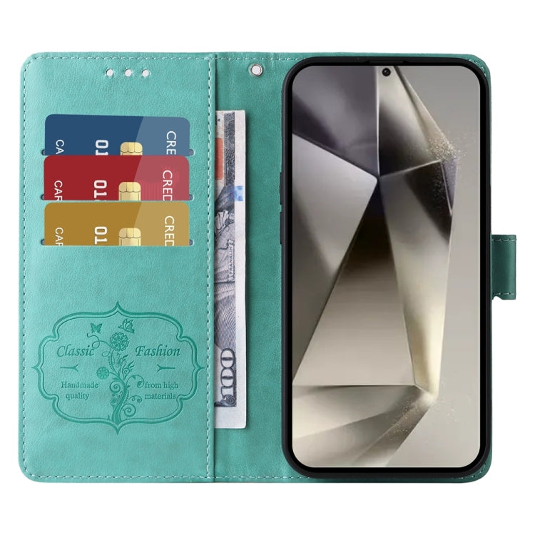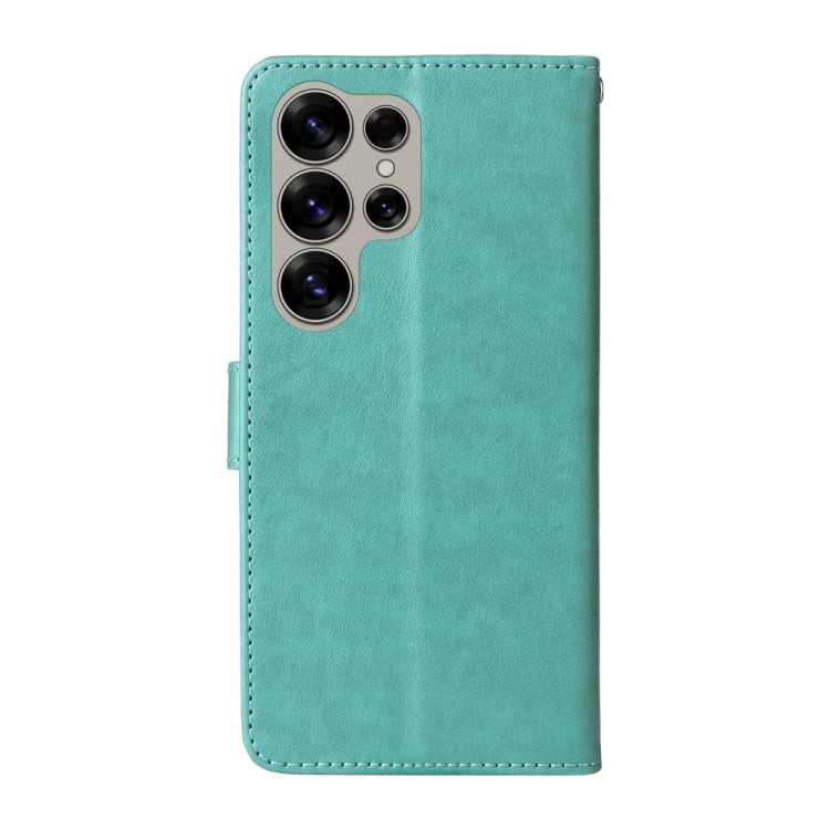 For Samsung Galaxy S25 Ultra 5G Embossed Butterfly Flowers Leather Phone Case(Green)