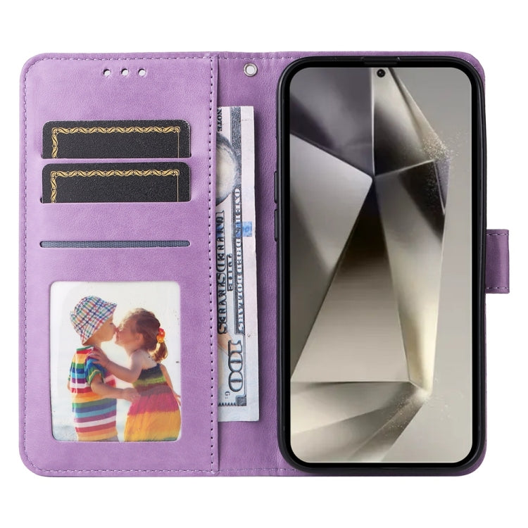 For Samsung Galaxy S25 Ultra 5G Embossed Sunflower Leather Phone Case(Purple)