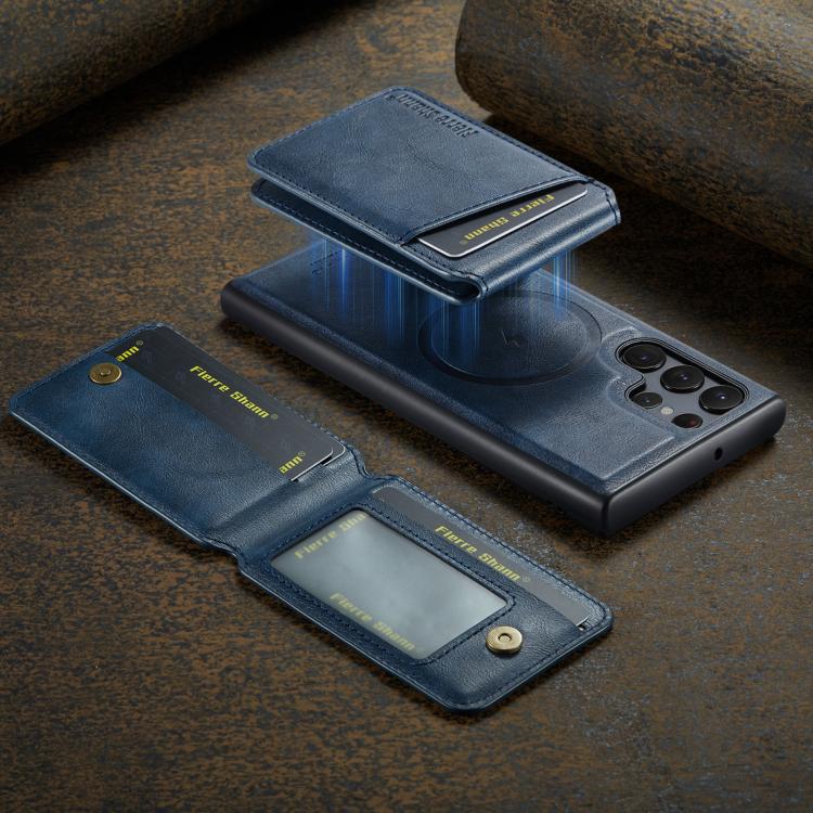 For Samsung Galaxy S25 Ultra 5G Fierre Shann Cowhide Vertical Flip Magnetic Card Holder Phone Case(Blue)