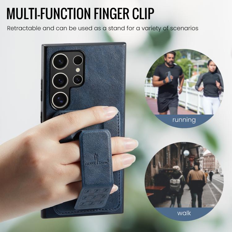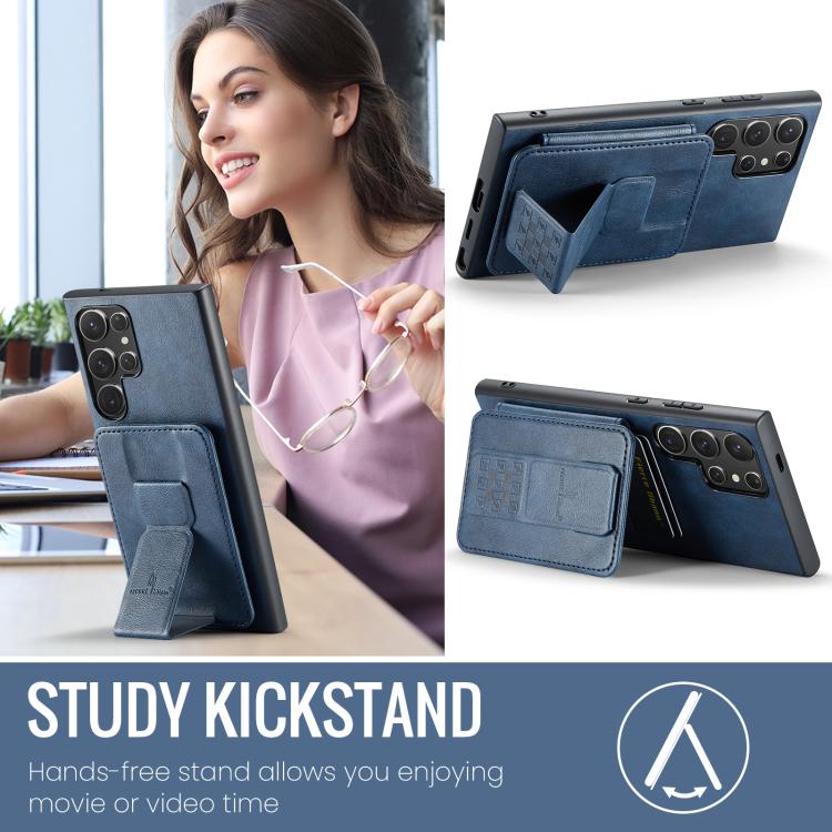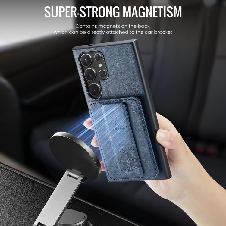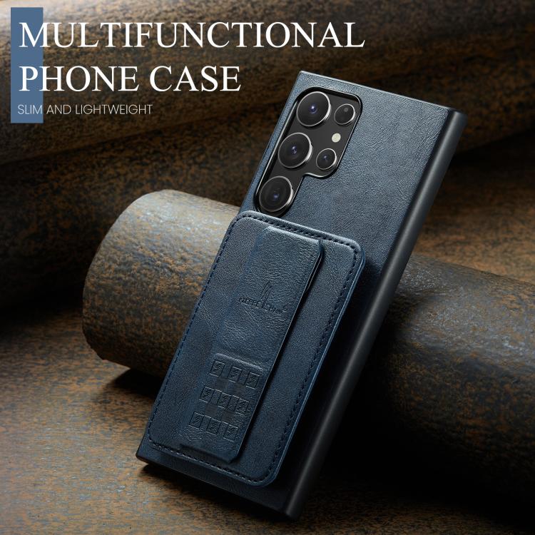 For Samsung Galaxy S25 Ultra 5G Fierre Shann FS-024 Oil Wax Cow Leather Card Holder Back Phone Case(Blue)