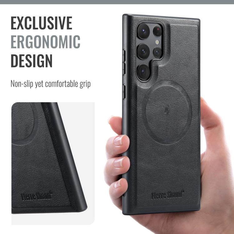 For Samsung Galaxy S25 Ultra 5G Fierre Shann FS-027 Cowhide Texture MagSafe Magnetic Phone Case(Black)