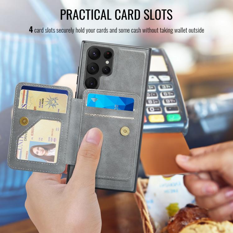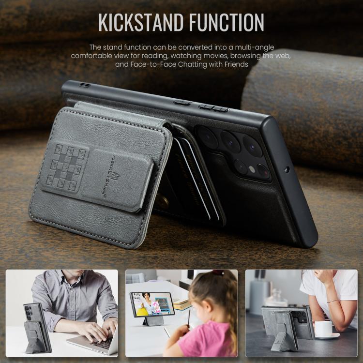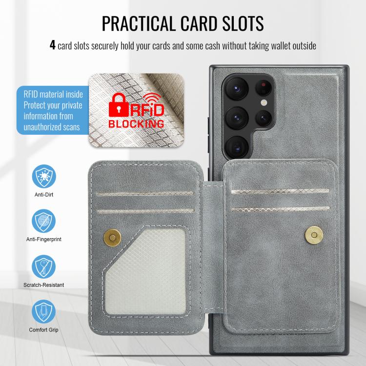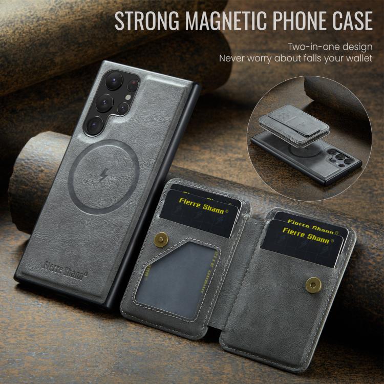 For Samsung Galaxy S25 Ultra 5G Fierre Shann FS028 MagSafe RFID Card Holder Back Phone Case(Grey)