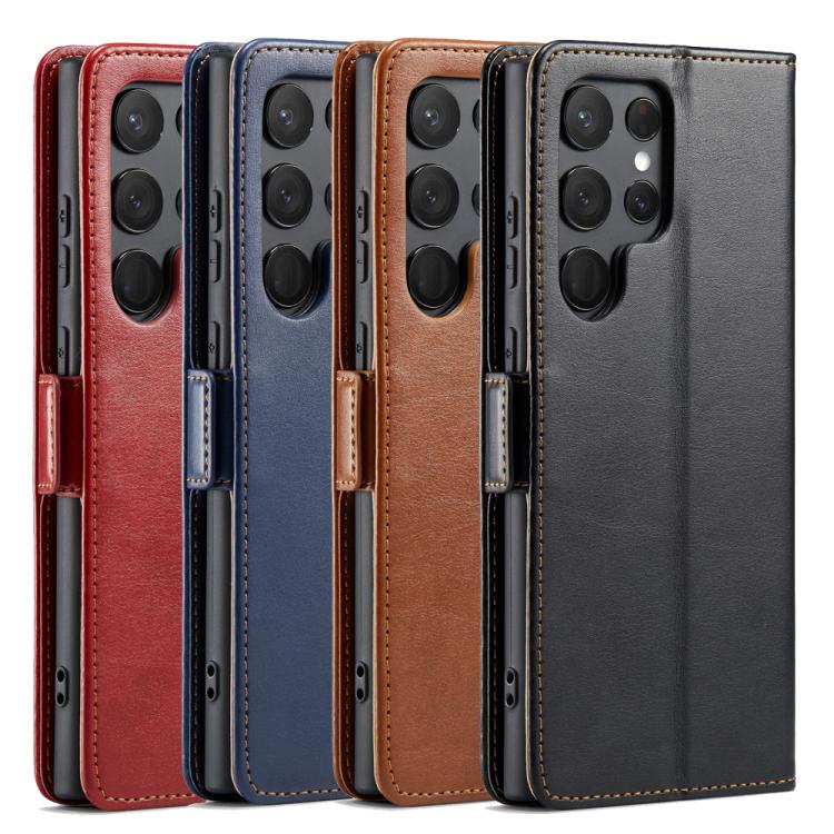 For Samsung Galaxy S25 Ultra 5G Fierre Shann PU Genuine Leather Texture Phone Case(Black)