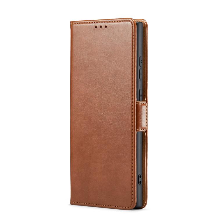 For Samsung Galaxy S25 Ultra 5G Fierre Shann PU Genuine Leather Texture Phone Case(Brown)
