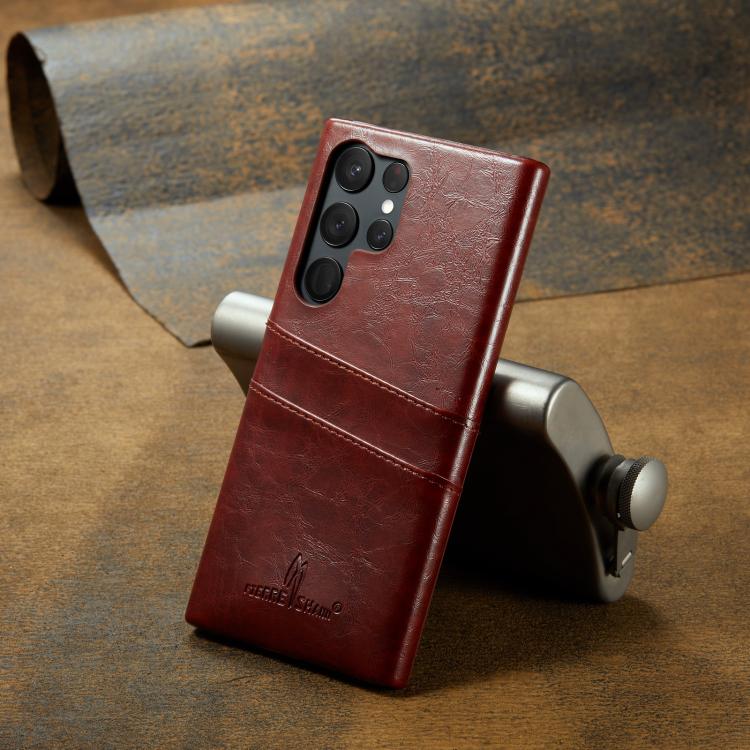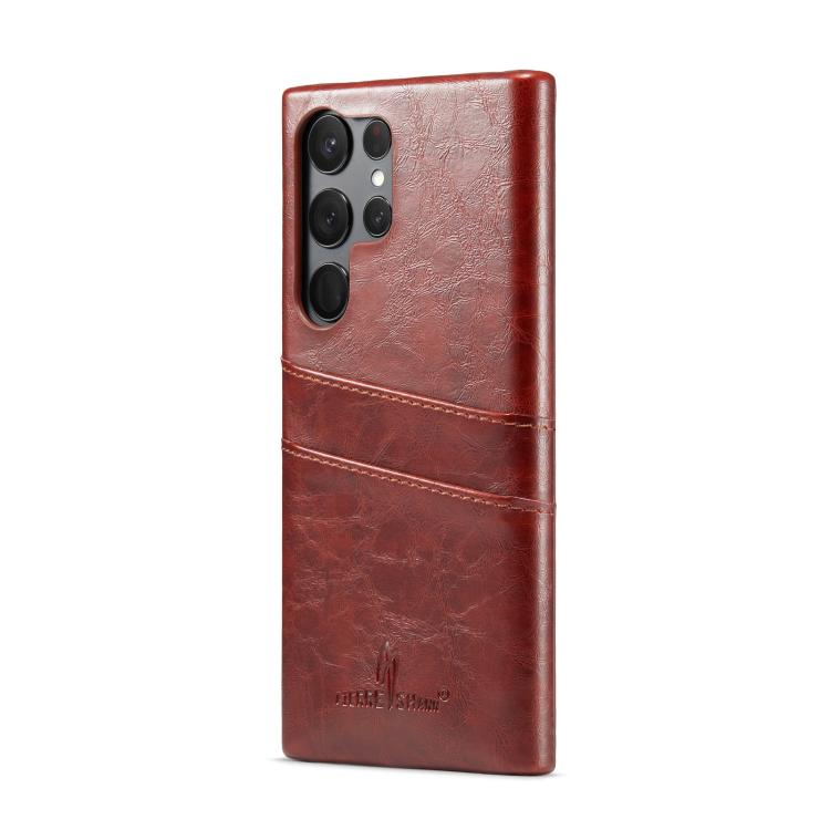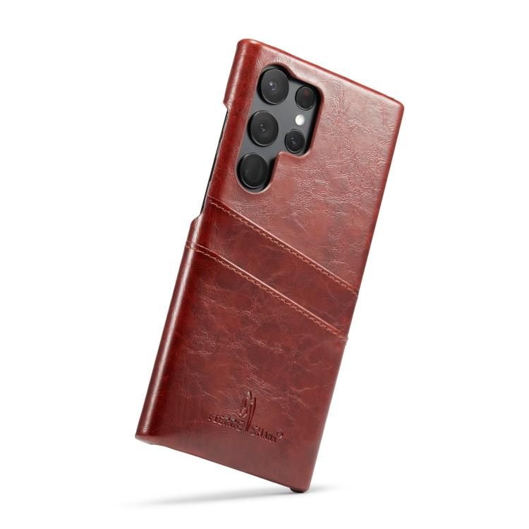 For Samsung Galaxy S25 Ultra 5G Fierre Shann Retro Oil Wax Texture Card Slots PU Leather Phone Case(Brown)