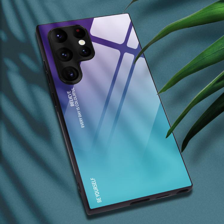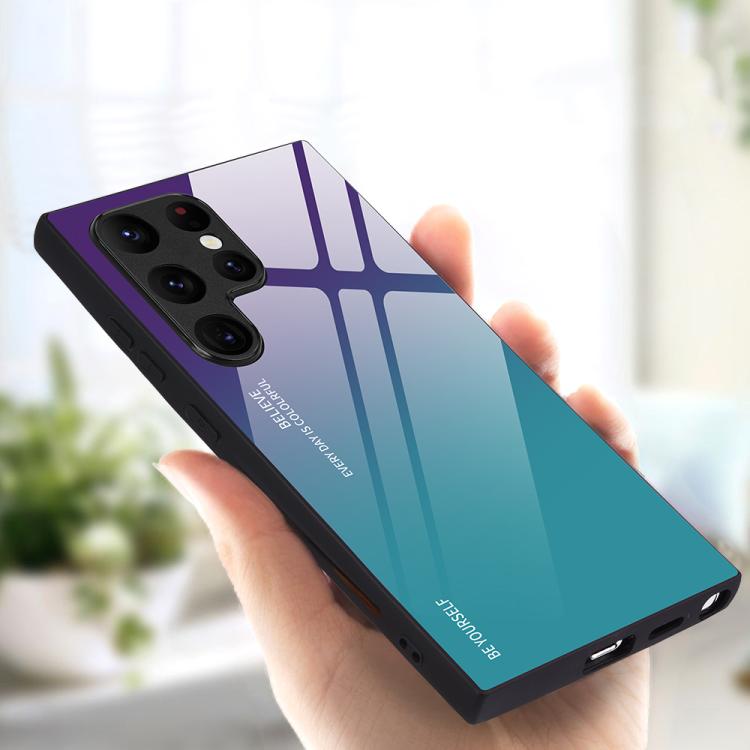 For Samsung Galaxy S25 Ultra 5G Gradient Color Glass Phone Case(Aurora Blue)