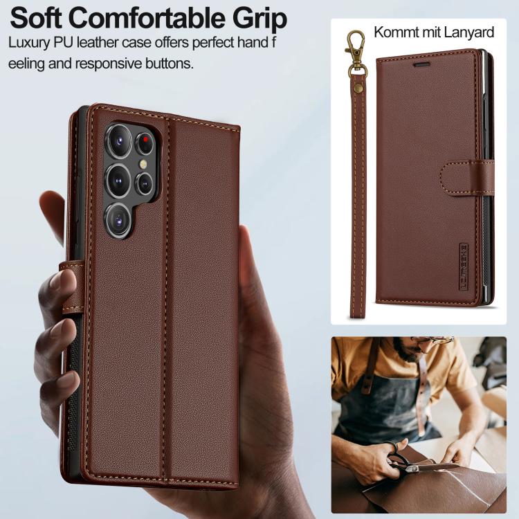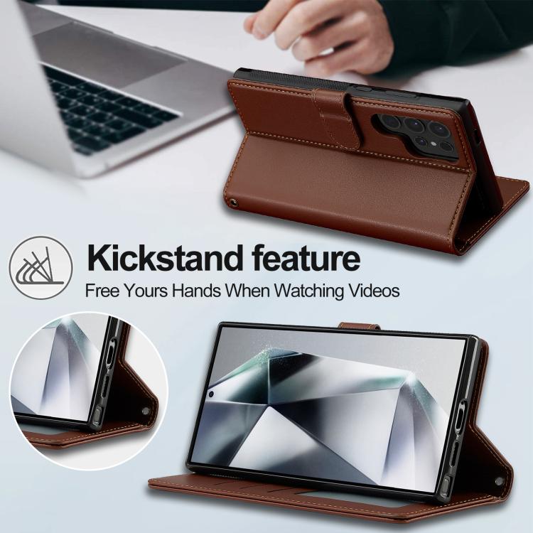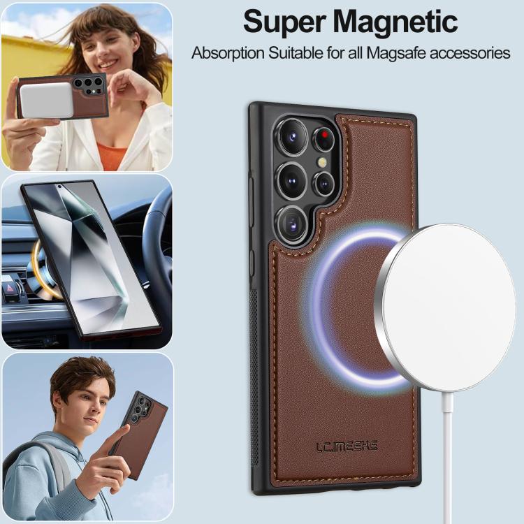 For Samsung Galaxy S25 Ultra 5G LC.IMEEKE L2 Series Detachable Magsafe PU Phone Case with Lanyard(Brown)