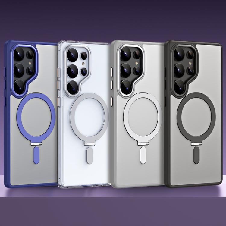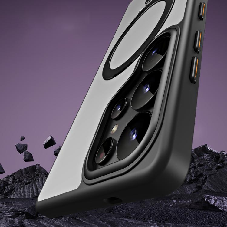 For Samsung Galaxy S25 Ultra 5G MagSafe Airbag Shockproof Frosted Phone Case with Fold Holder(Grey)