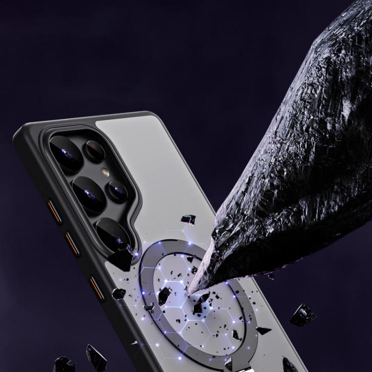 For Samsung Galaxy S25 Ultra 5G MagSafe Airbag Shockproof Frosted Phone Case with Fold Holder(Silver)