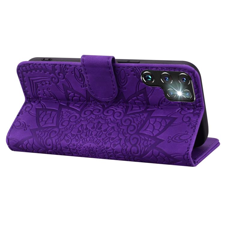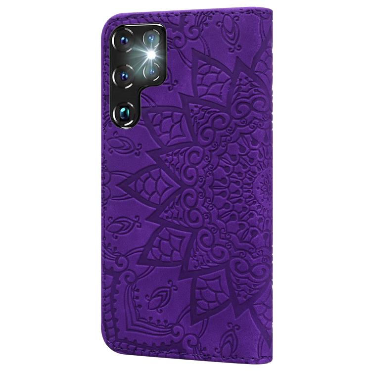 For Samsung Galaxy S25 Ultra 5G Mandala Embossed Dual-Fold Calf Leather Phone Case(Purple)