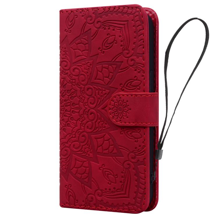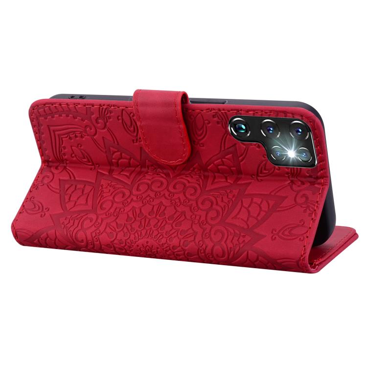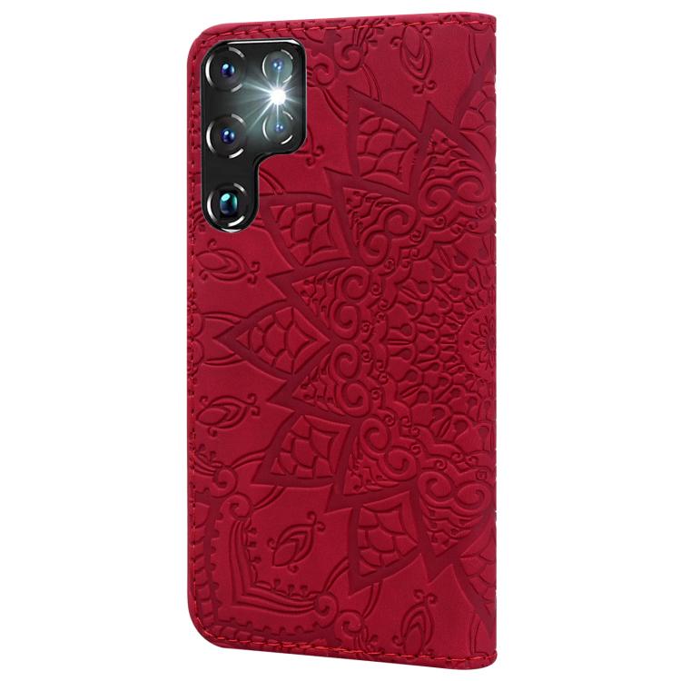 For Samsung Galaxy S25 Ultra 5G Mandala Embossed Dual-Fold Calf Leather Phone Case(Red)