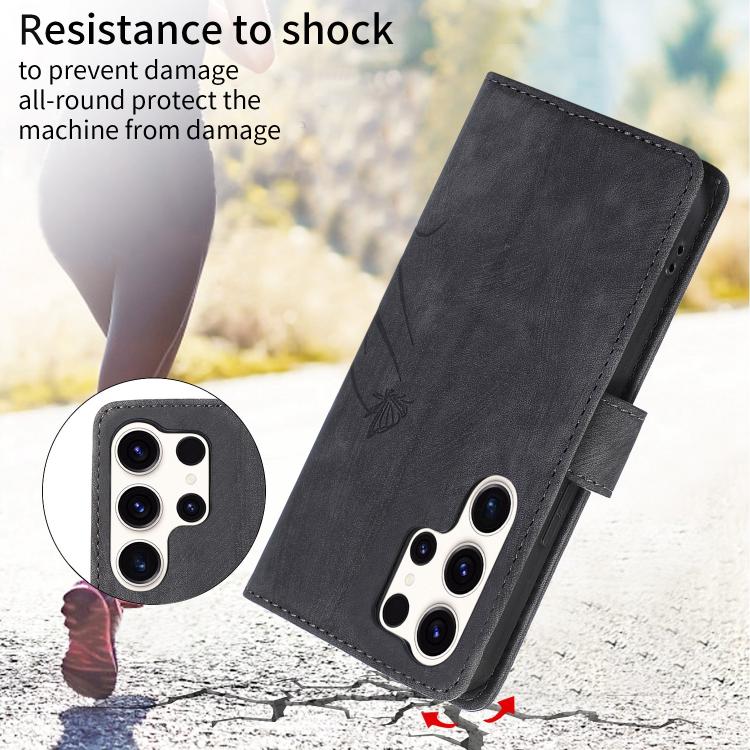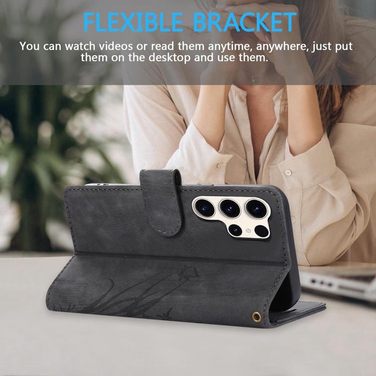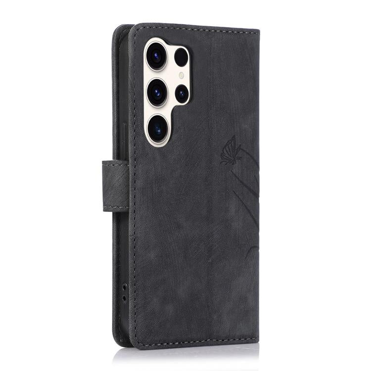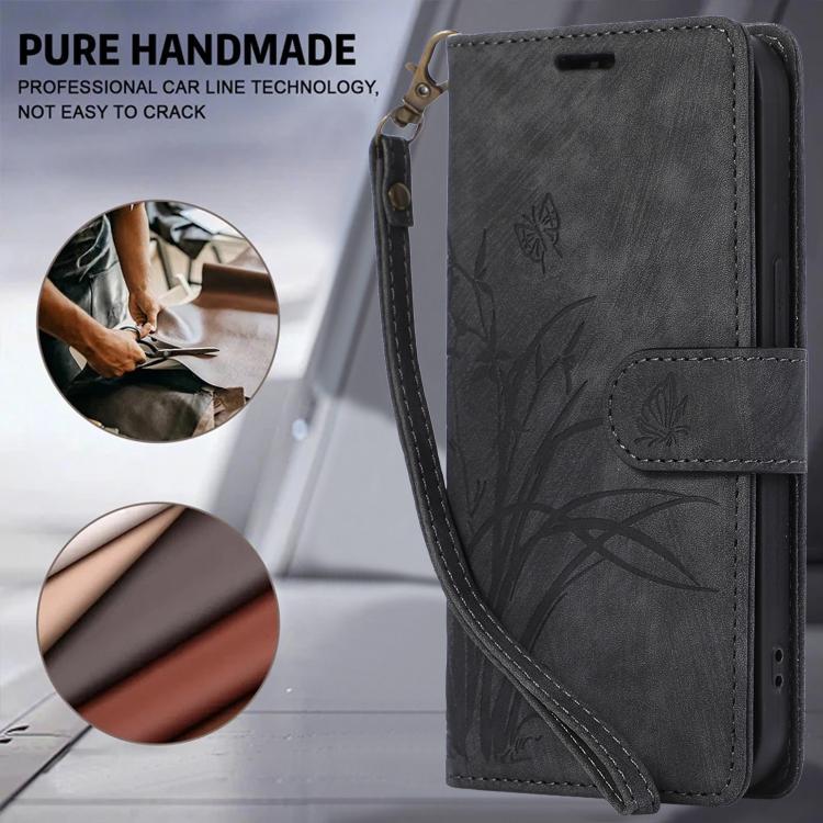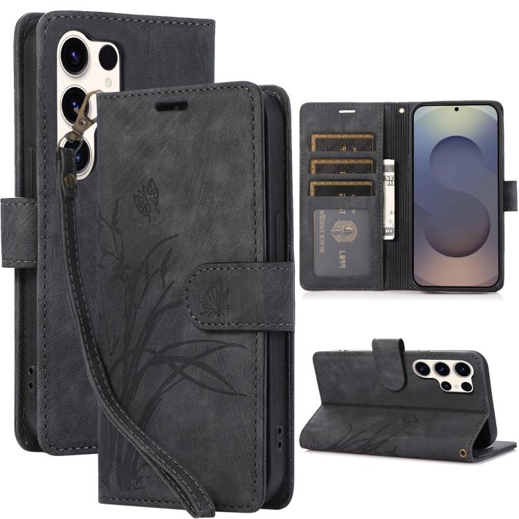 For Samsung Galaxy S25 Ultra 5G Orchid Butterfly Embossed Leather Phone Case(Black)