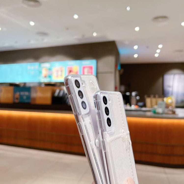 For Samsung Galaxy S25 Ultra 5G Pearl Bow Glitter Epoxy TPU Phone Case(Cross Knots)