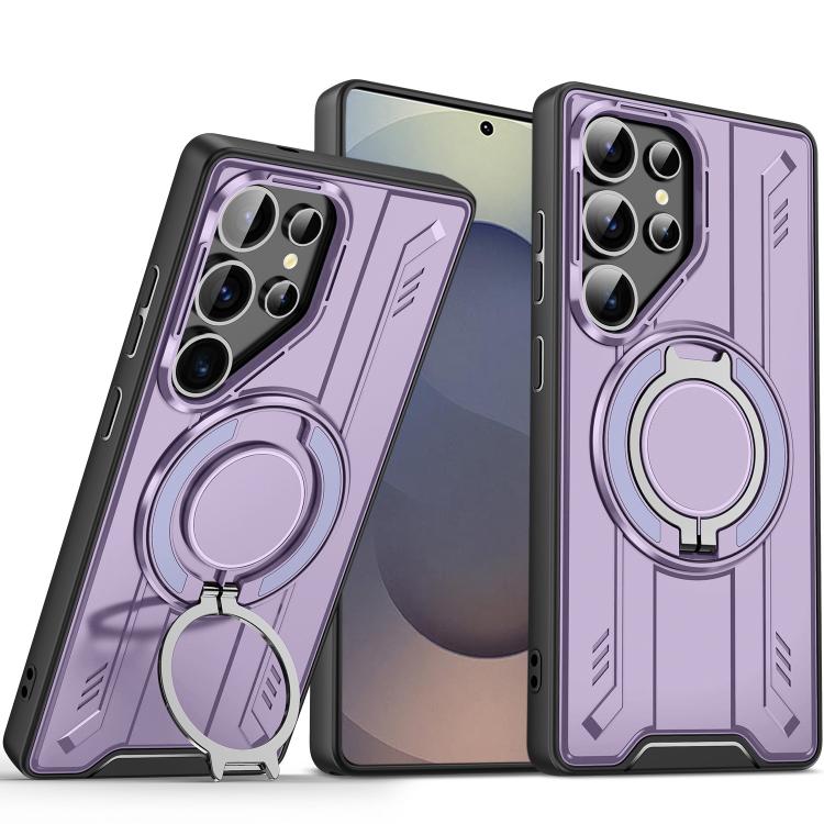 For Samsung Galaxy S25 Ultra 5G Rotating Ring Holder Magnetic MagSafe Phone Case(Purple)