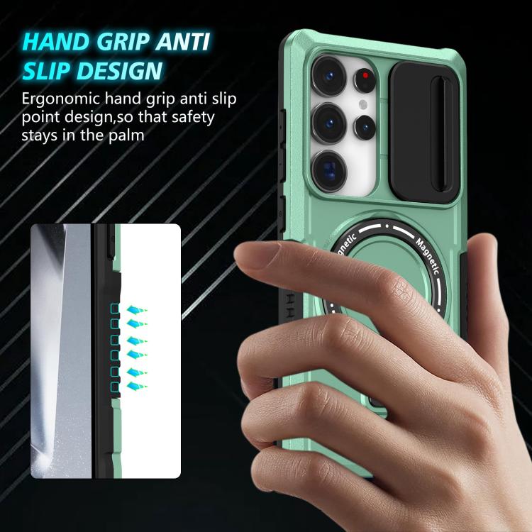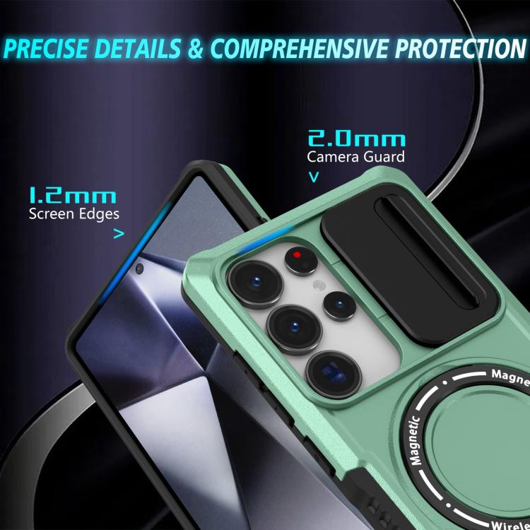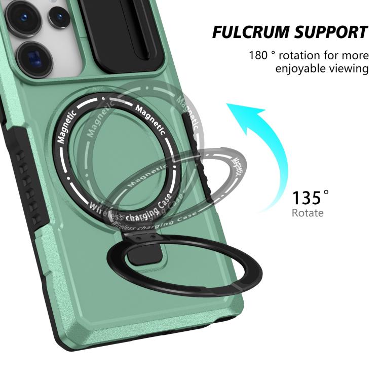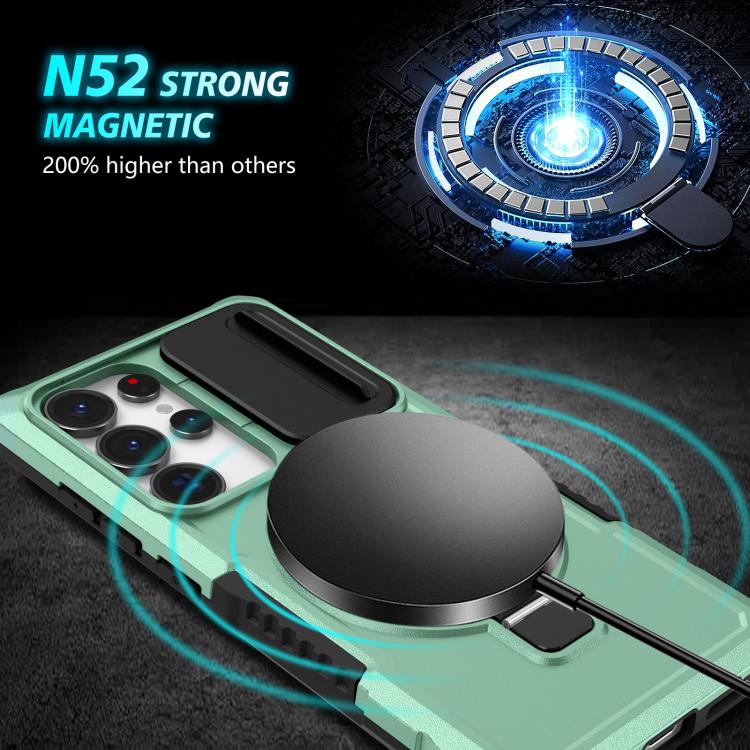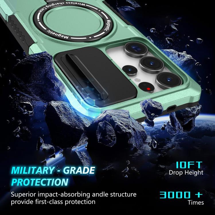 For Samsung Galaxy S25 Ultra 5G Sliding Camshield MagSafe Holder TPU Hybrid PC Phone Case(Light Blue)