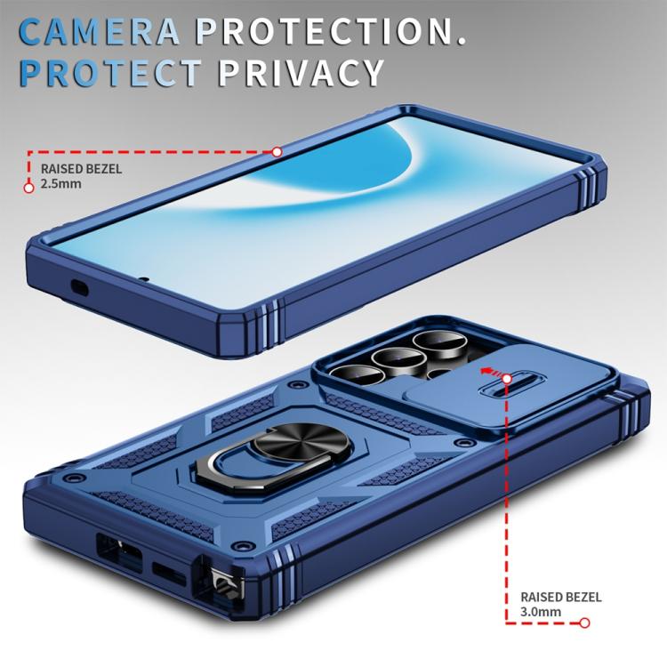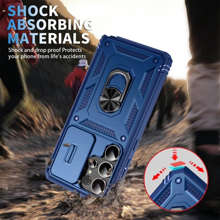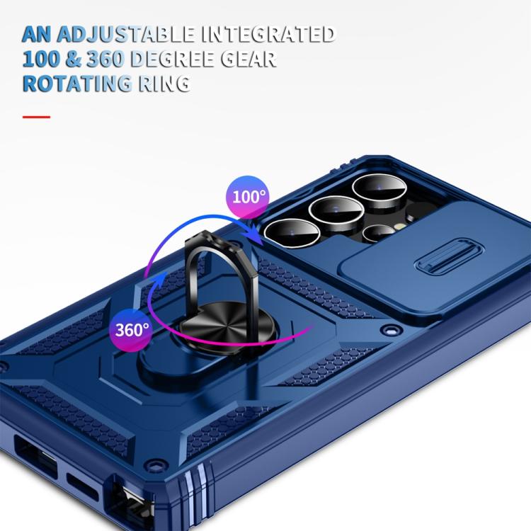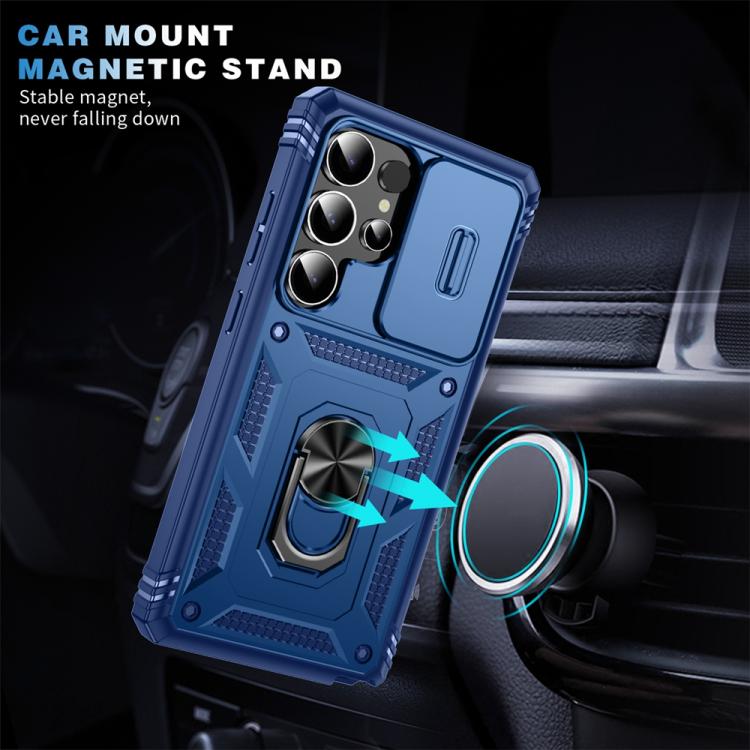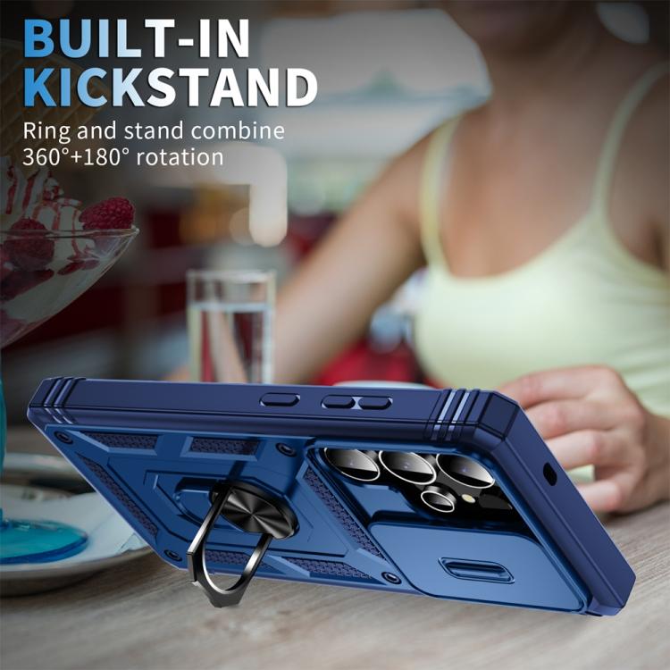 For Samsung Galaxy S25 Ultra 5G Sliding Camshield TPU Hybrid PC Phone Case with Holder(Navy Blue)