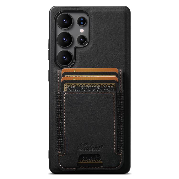 For Samsung Galaxy S25 Ultra 5G Suteni H17 Litchi Texture Leather MagSafe Detachable Wallet Phone Case(Black)