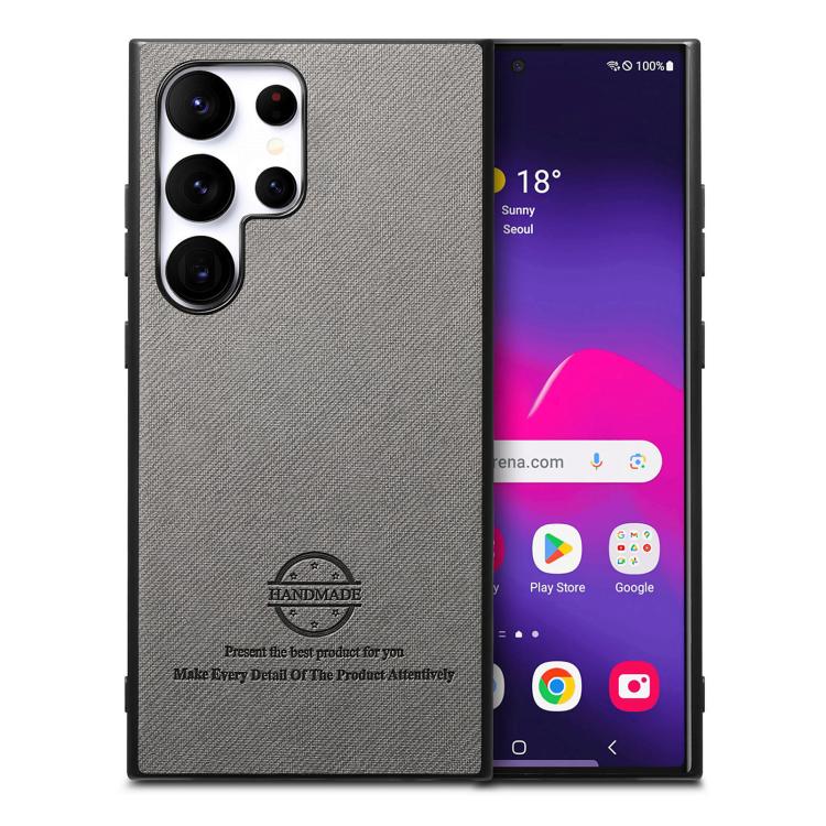 For Samsung Galaxy S25 Ultra 5G Twill Fabric Leather Skin Back Phone Case(Gray)