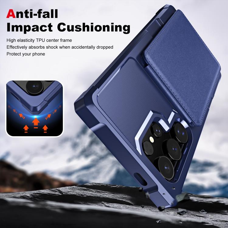 For Samsung Galaxy S25 Ultra 5G Vertical Flip Card Bag Holder Leather Phone Case(Dark Blue)