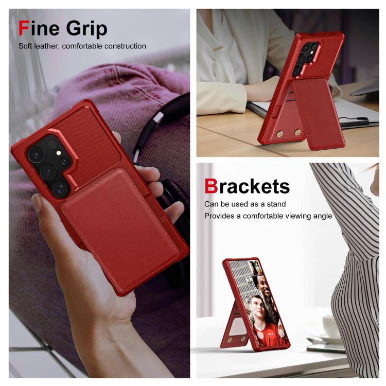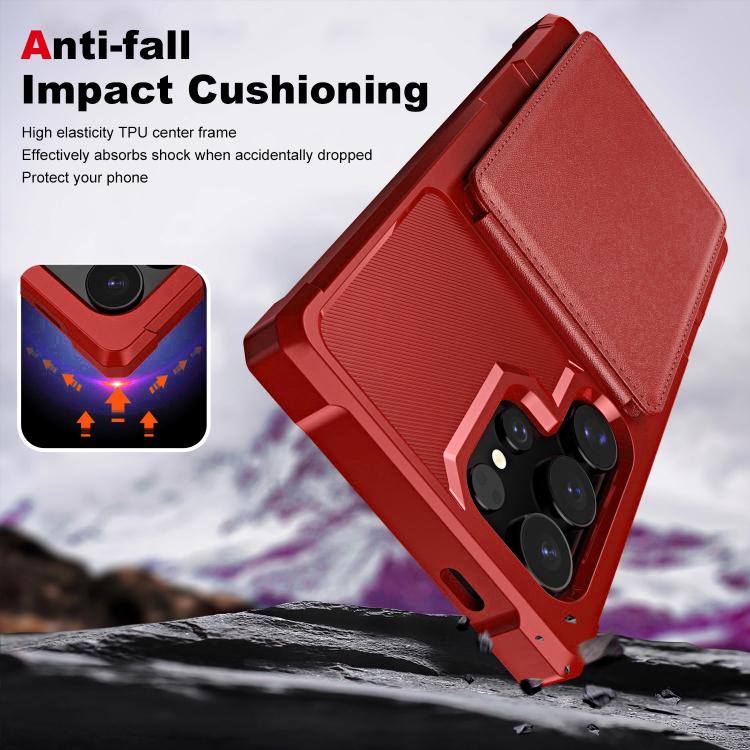 For Samsung Galaxy S25 Ultra 5G Vertical Flip Card Bag Holder Leather Phone Case(Red)
