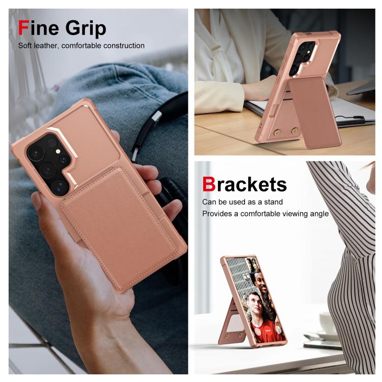 For Samsung Galaxy S25 Ultra 5G Vertical Flip Card Bag Holder Leather Phone Case(Rose Gold)