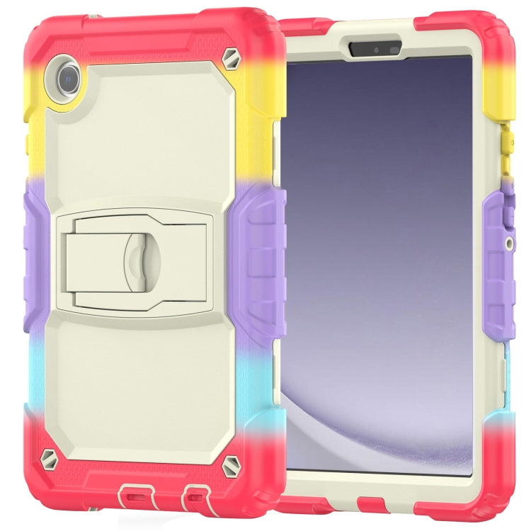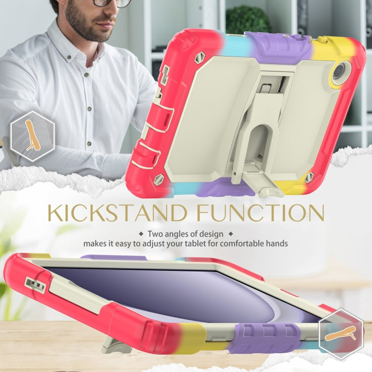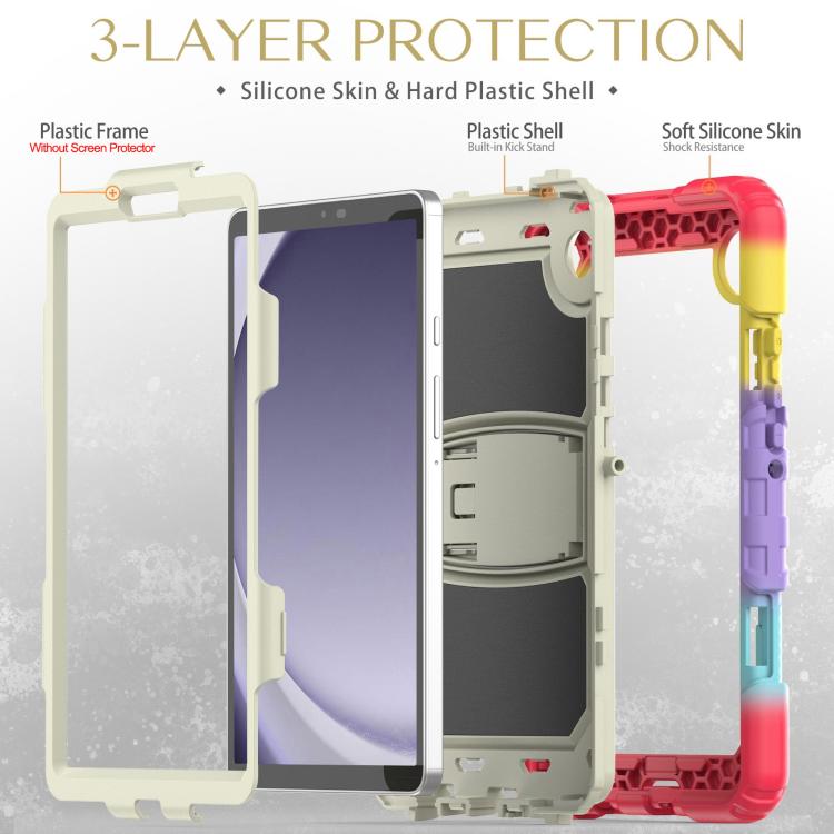 For Samsung Galaxy Tab A11 / A9 Silicone Hydric PC Tablet Case with Shoulder Strap & Holder(Colorful Red)