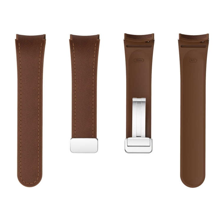 For Samsung Galaxy Watch 6 Magnetic Silver Buckle Leather Silicone Watch Band(Dark Brown)