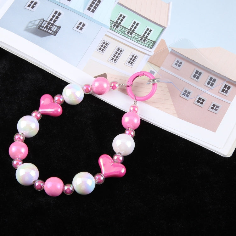 Laser Pearl Heart Bead Chain Anti-lost Short Lanyard(Rose Red)