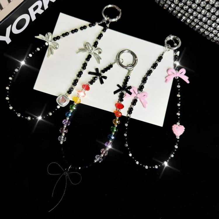 Love Bow Crystal Beads Mobile Phone Chain(Argent)