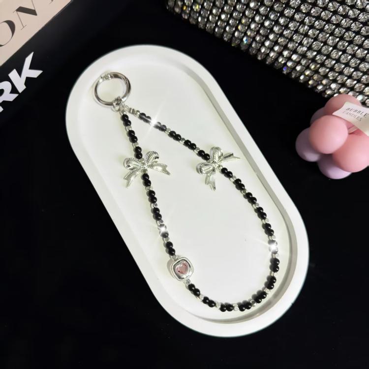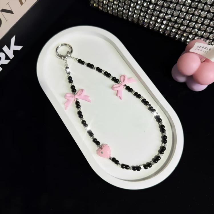 Love Bow Crystal Beads Mobile Phone Chain(Black)