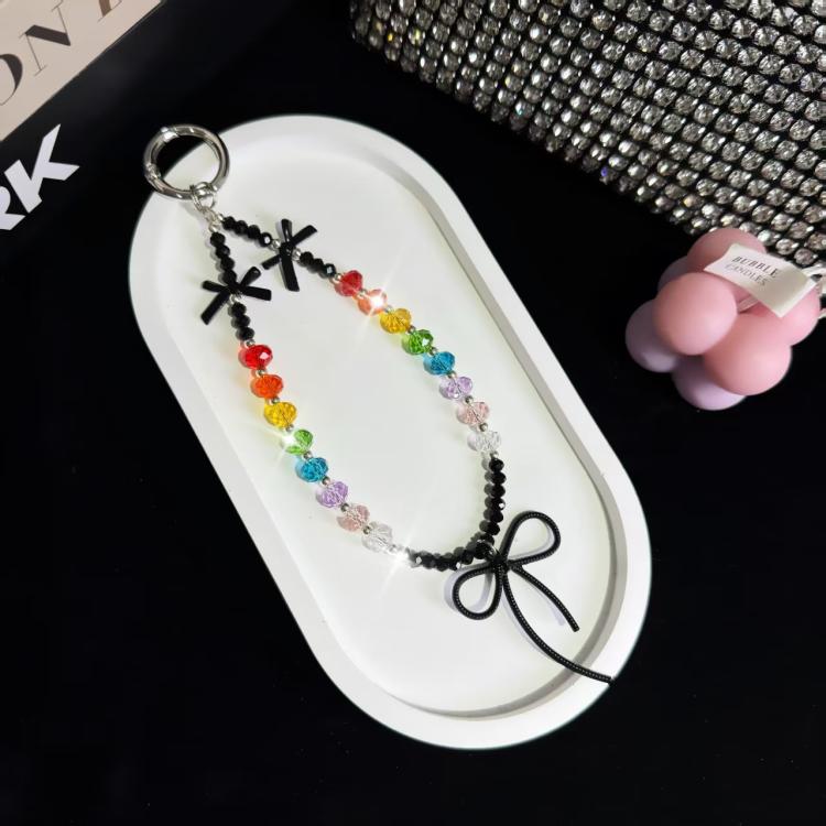 Love Bow Crystal Beads Mobile Phone Chain(Pink)