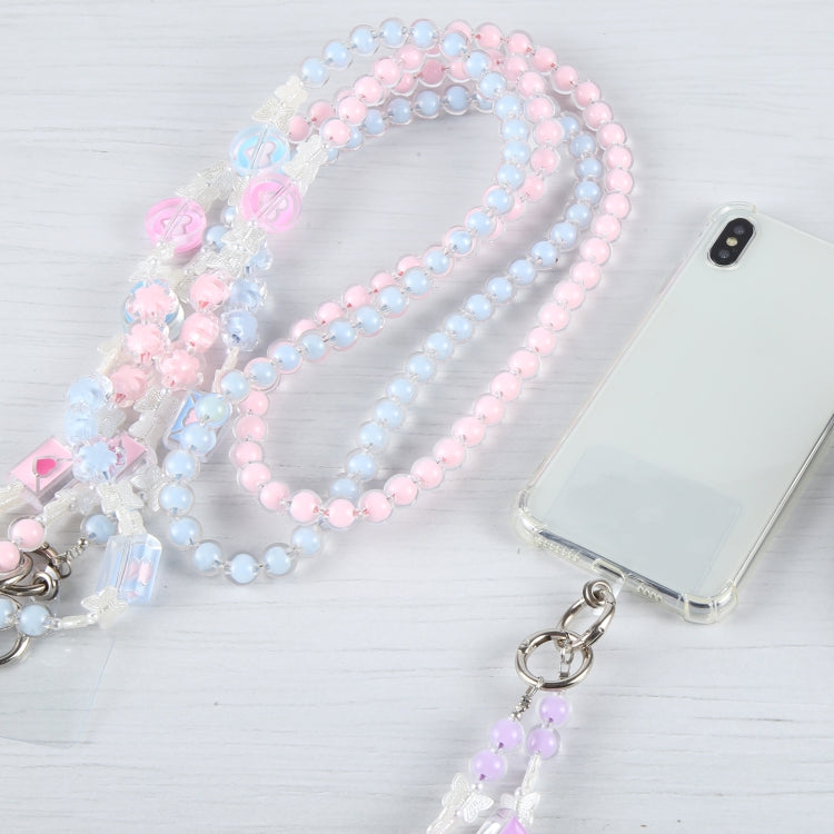 Mobile Phone Anti-lost Butterfly Crossbody Long Bead Chain(Pink)