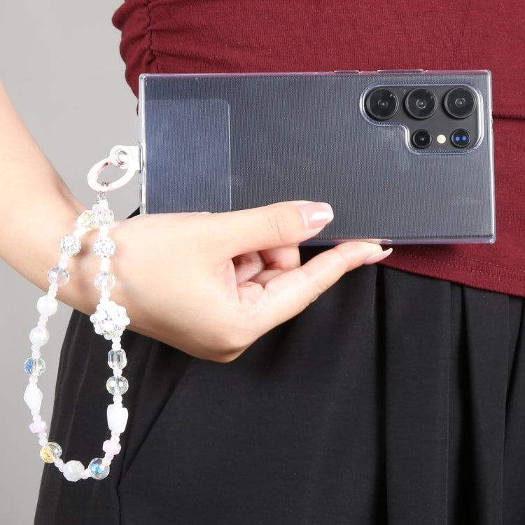 Mobile Phone Anti-lost Rhinestone Bead Chain Short Lanyard(Pink)