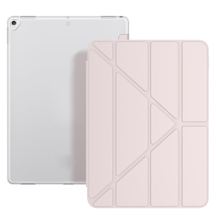 Multi-folding TPU Back Flip Leather Smart Tablet Case for iPad Pro 12.9 inch 2015 / 2017 (Light Pink)